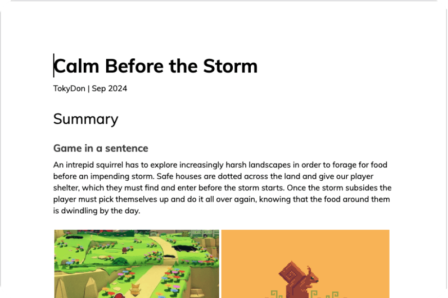 I led the development of the core gameplay mechanics, focusing on balanced loops, difficulty progression, and rewarding player engagement. The result was an enjoyable yet challenging experience centred around our protagonist, Squall the squirrel, who must gather acorns to survive an incoming storm.